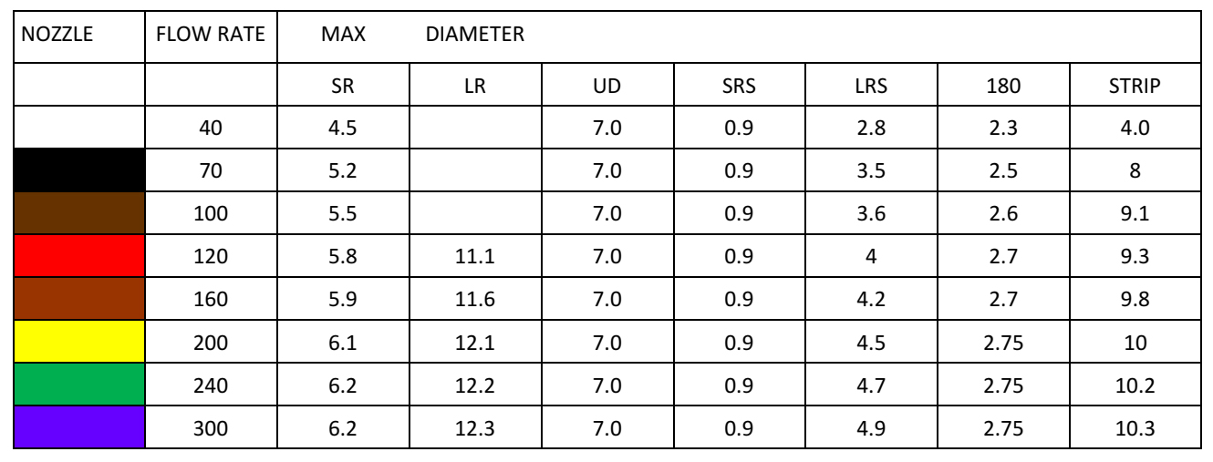 • A wide range of flow rates, distribution patterns and wetted diameters.